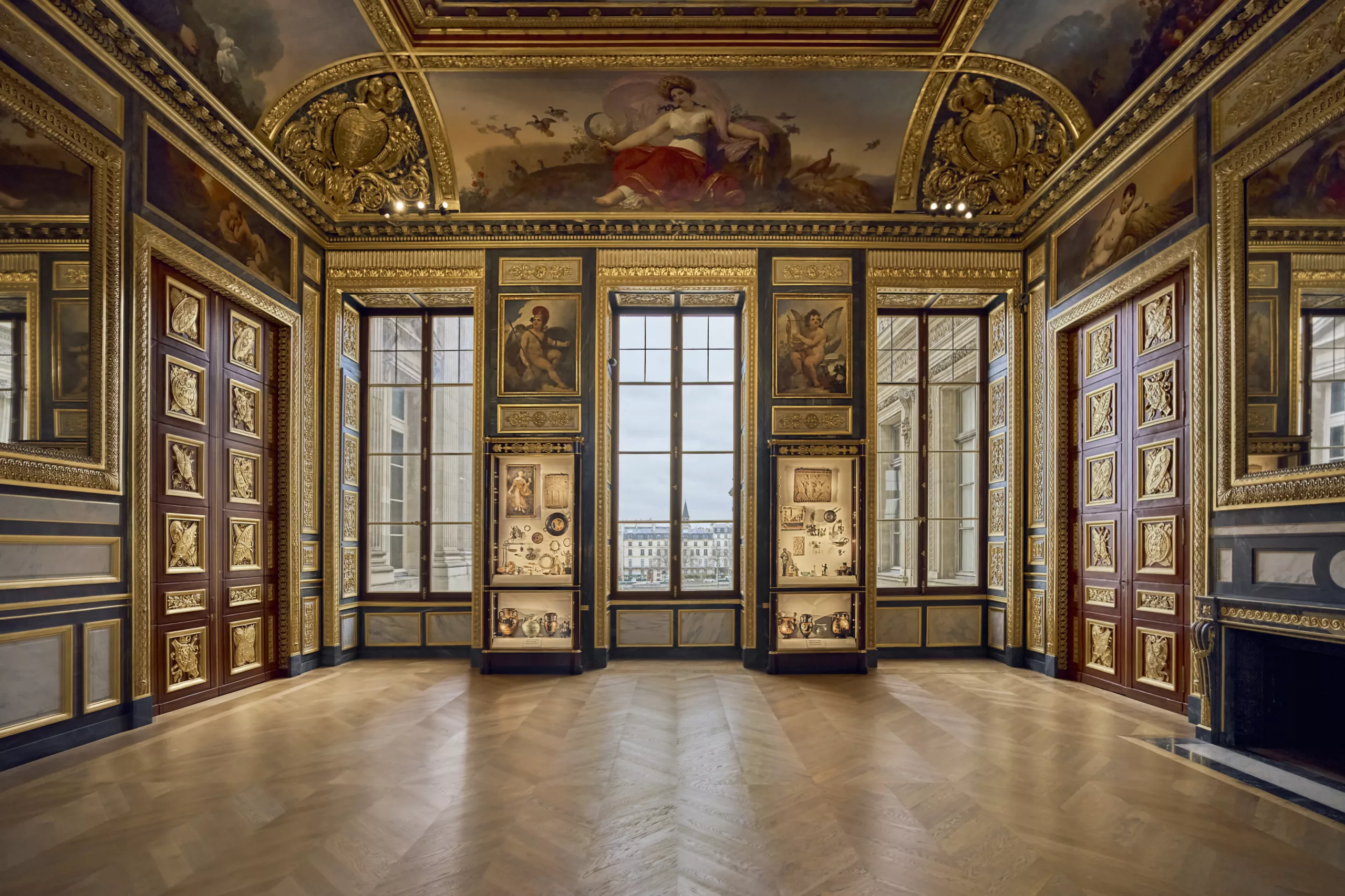 Des restaurateurs de l’atelier de menuiserie-ébénisterie du musée du Louvre ont présenté le travail effectué sur une vitrine en chêne plaqué d’acajou avec décors en appliques de bronze doré datant de 1822.